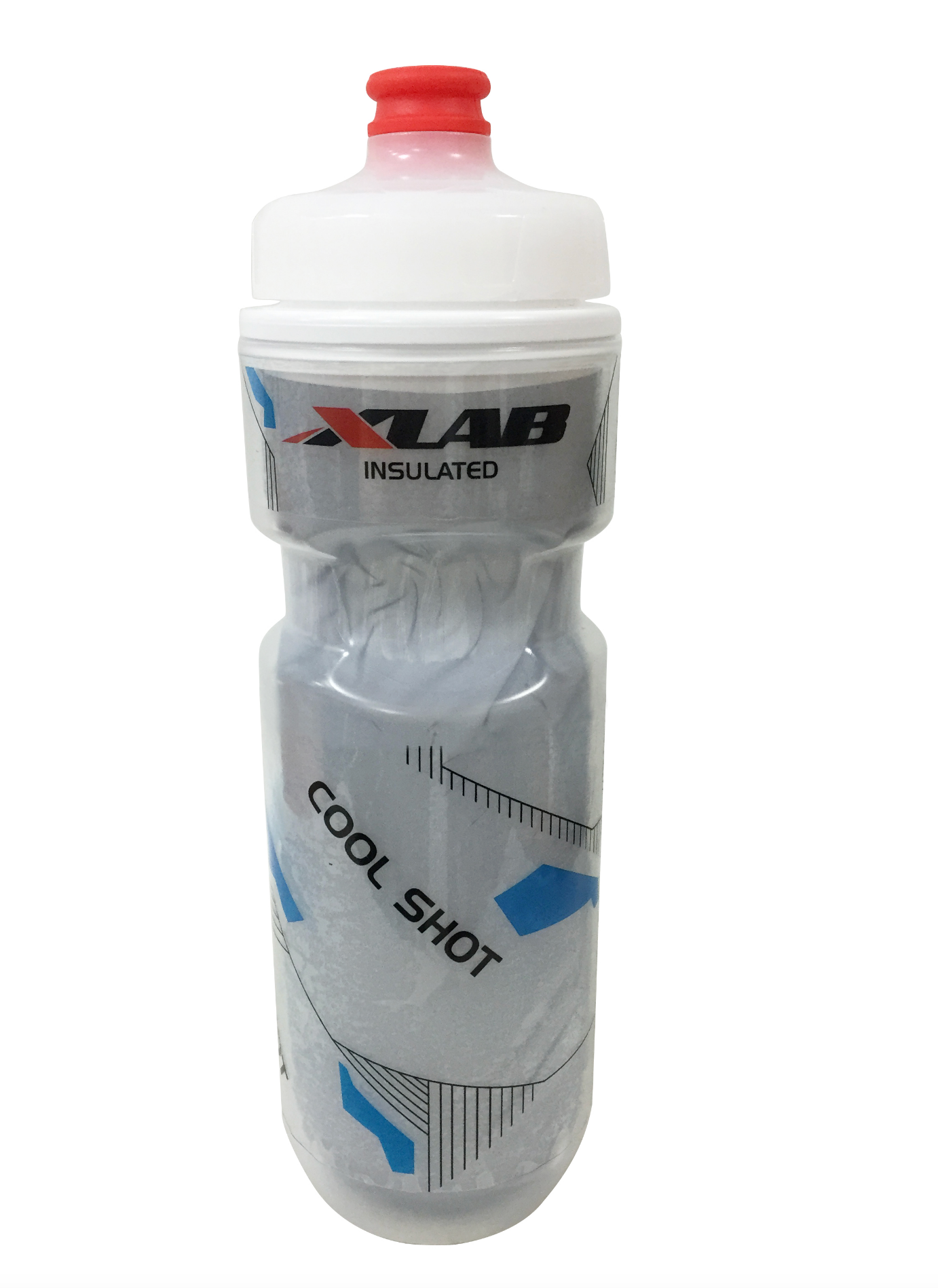 Hyper-reflective insulated bottle perfectly notched to fit snugly in all XLAB cages.