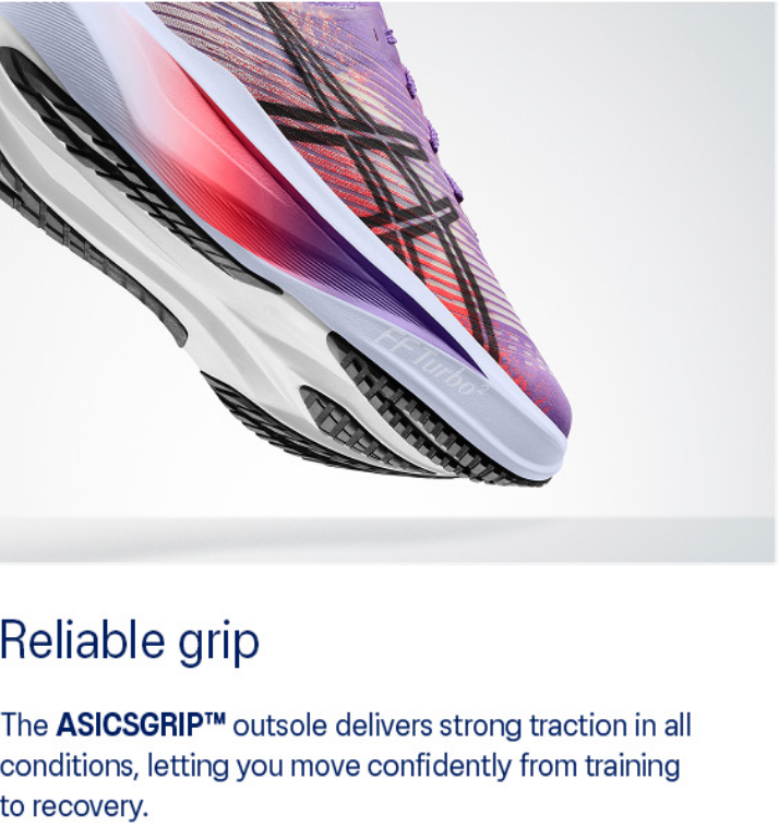 - ASICSGRIP™ outsole rubber - ASICS® proprietary outsole that provides advanced grip on a variety of terrain.