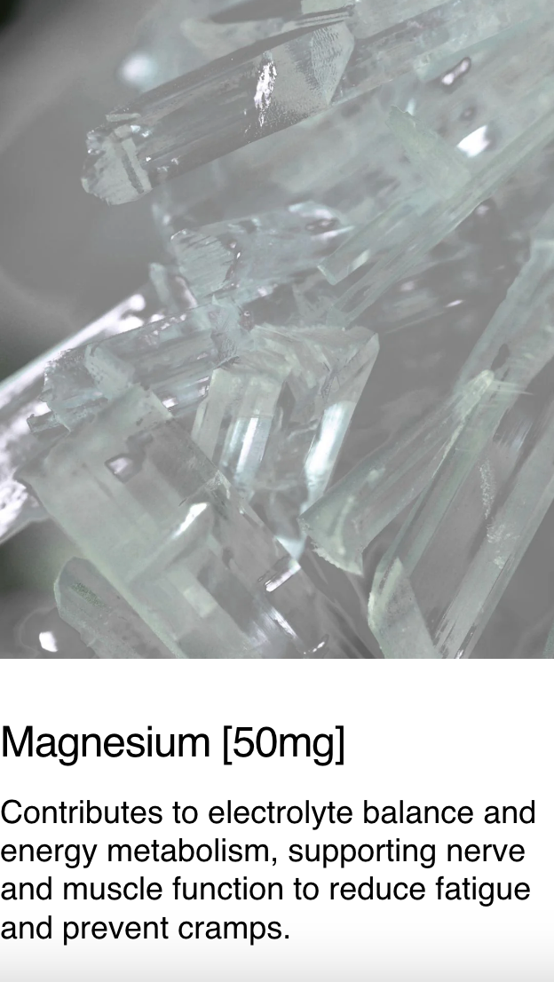 Daily Rythym: Add 1/2 serving (1/2 tsp) of mix to 550ml of water to replenish electrolyte stores lost through sleep and daily rhythm. Add flavour as desired.