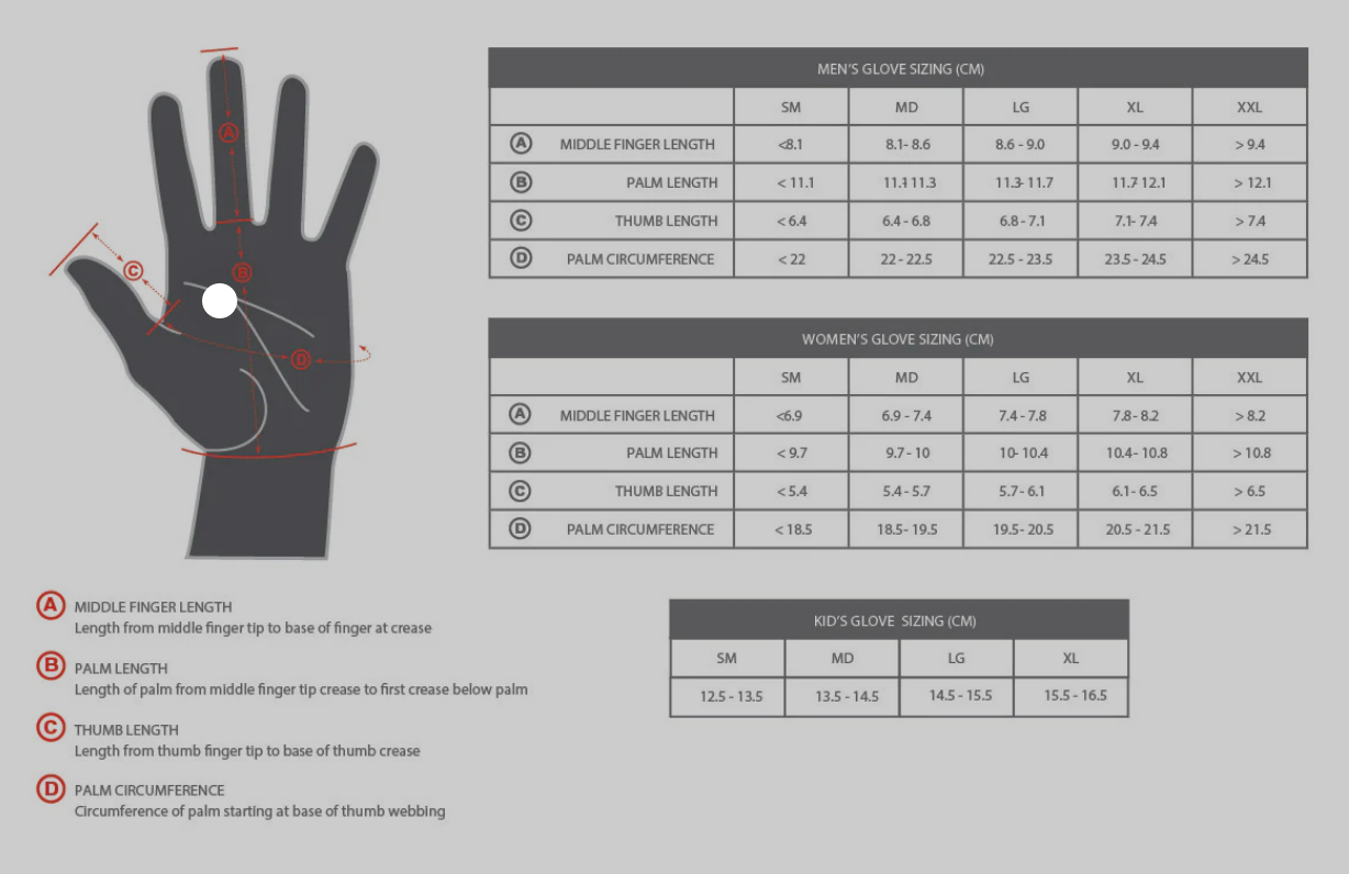 - Contoured Velcro® wrist closure offers easy adjustment and entry/exit from the gloves.